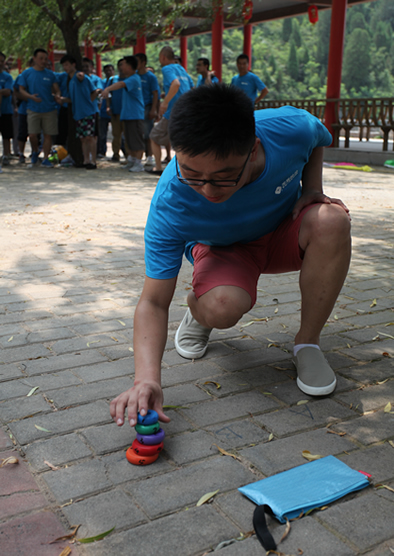 由于當(dāng)日氣溫比較炎熱,室外拓展進(jìn)行了團(tuán)隊(duì)塔、愛(ài)的傳遞等運(yùn)動(dòng)量低但需要團(tuán)隊(duì)合作才能過(guò)關(guān)的項(xiàng)目。為了能完成教官布置的挑戰(zhàn),各小隊(duì)都能緊密協(xié)作,合理分工,整個(gè)挑戰(zhàn)過(guò)程中除了環(huán)環(huán)相扣的團(tuán)隊(duì)合作,也不乏個(gè)人智慧的閃現(xiàn)。
