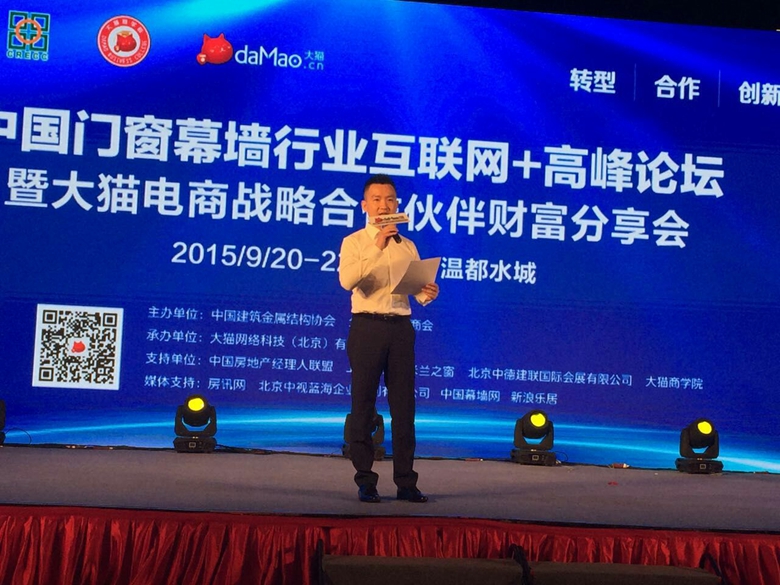 隨著全球趨勢的發(fā)展和政府的大力倡導,互聯(lián)網(wǎng)+正如火如荼地席卷所有行業(yè)。如今電子信息化時代,互聯(lián)網(wǎng)+的發(fā)展已經(jīng)有目共睹。2015年9月20日-22日在北京溫都水城,大貓電商與中國建筑金屬結(jié)構(gòu)協(xié)會、全聯(lián)房地產(chǎn)商會共同舉辦了“2015中國門窗幕墻行業(yè)互聯(lián)網(wǎng)+時代高峰論壇暨大貓電商戰(zhàn)略合作伙伴財富分享會”。天辰股份作為合作會員單位,應邀參加了此次論壇會。